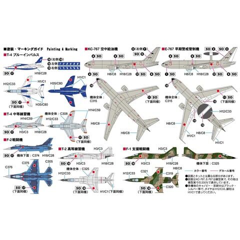 KC-767空中給油機/E-767AWACSの選択式×3機 F-1支援戦闘機/T-2高等練習機の選択式×6機 F-2支援戦闘機×6機入り T-4中等練習機×6機入り 地対空誘導弾 ペトリオットシステム(アンテナマスト車 、牽引車、射撃管制装置搭載車 、発射機搭載トレーラー、電源車、レーダー搭載トレーラー×各3) 96式装輪装甲車、20mmVADS、VADS用レーダー車×各3両入り