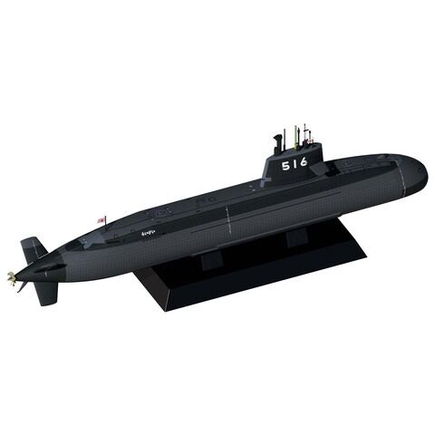 フルハルモデル ワイド化した船体上部やセイル基部等、そうりゅう との相違点も再現しつつ、組み立て、塗装がしやすいパーツ分割となっています。 船体、セイルを覆う吸音タイル部分はモールド再現。 潜舵上のハッチ形状が造船所により異なる2種類のセイルパーツ付属 SS-516らいげい、SS-517(命名は2024年秋)の艦番号/艦名デカール付属 1隻入り 全長:239.5mm