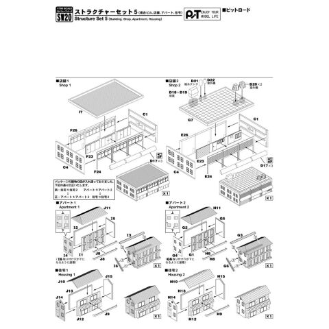 ピットロード 1/700 ストラクチャーセット5(複合ビル、店舗、アパート、住宅) です。