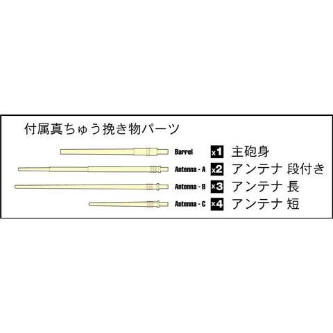 手すり、ラッタル、ドア・ハッチ、ルーバー、浮き輪、マスト支柱、スクリューガード、落下防止ネット、発着艦指揮所、ライフラフトラック、ボートクラッチ、12.7mm機銃、ヘリローター 他。