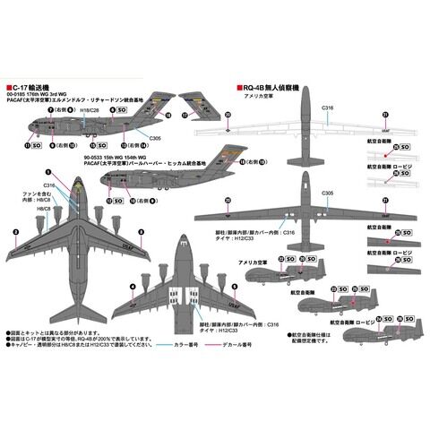 C-17輸送機(全長:75.8mm)×2機 無人航空機RQ-4B(全長:20.7mm)×2機 ホワイトメタル製B-66爆撃機×1機付属