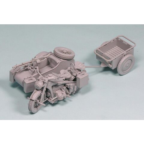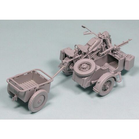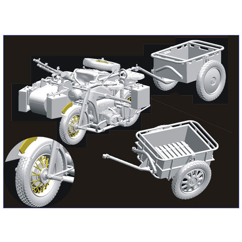 グレートウォールホビー 1/35 WWII ドイツ軍用サイドカー KS750(トレーラー2種付き) です。