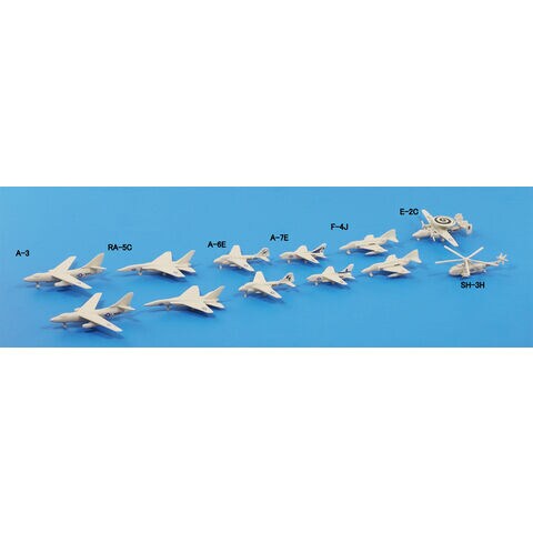 F-4J 艦上戦闘機(全長:約25mm)×6 A-3 大型艦上攻撃機(全長:約33mm)×2 A-6E 艦上攻撃機(全長:約24mm)×4 A-7E 艦上攻撃機(全長:約20mm)×6 E-2C 早期警戒機(全長:約25mm)×1 RA-5C 艦上偵察機(全長:約32mm)×2 SH-3H 対潜ヘリコプター(全長:約24mm)(展開時/格納時)×各1