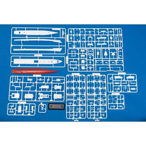 ※艦艇パーツは艦底色(赤)で成型、台座パーツは黒色で成型しています。