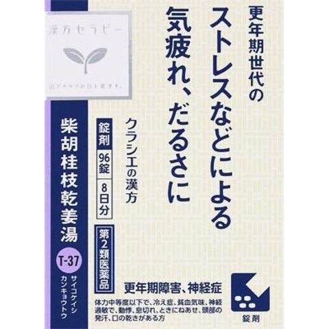 | 体力中等度以下で、冷え症、貧血気味、神経過敏で、動悸、息切れ、ときにねあせ、頭部の発汗、口の乾きがあるものの次の諸症:更年期障害、血の道症、不眠症、神経症、動悸、息切れ、かぜの後期の症状、気管支炎 (注)「血の道症」とは、月経、妊娠、出産、産後、更年期など女性のホルモンの変動に伴って現れる精神不安やいらだちなどの精神神経症状および身体症状を指します。 |