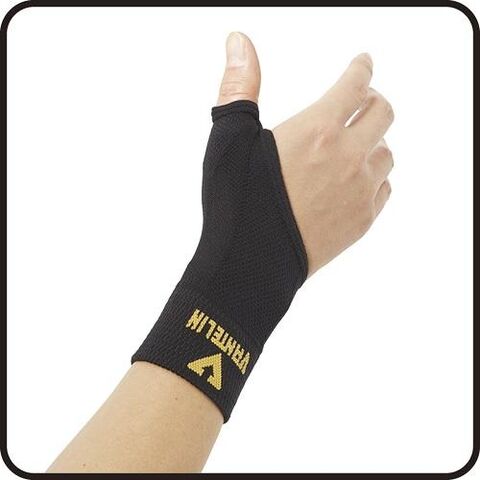 ◆親指側と小指側のサイドサンドウィッチ型テーピング編みが、手くびの左右の過度な動きを抑制し、親指の付け根の不快感を軽減します。