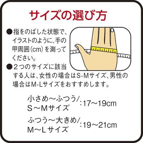 ◆手の甲周囲:小さめ~ふつう(S~Mサイズ)17~19cm