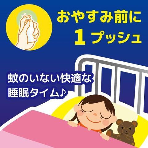 4.5~8畳に1プッシュ。お部屋全体に効きめが拡がり、蚊成虫に対して約12時間効果が持続します。