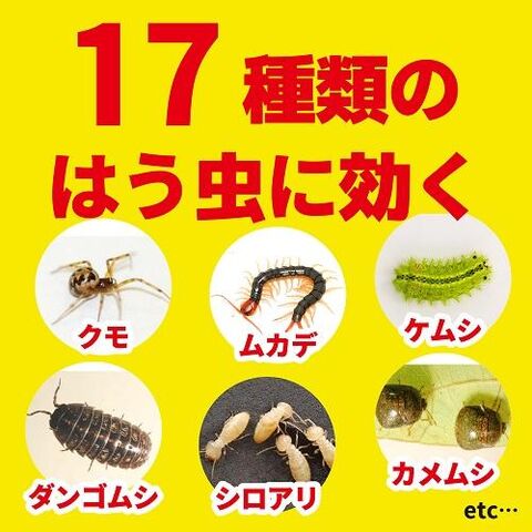 ダンゴムシやムカデなど、お家の周りで気になる17種類の様々な虫に効果があります。