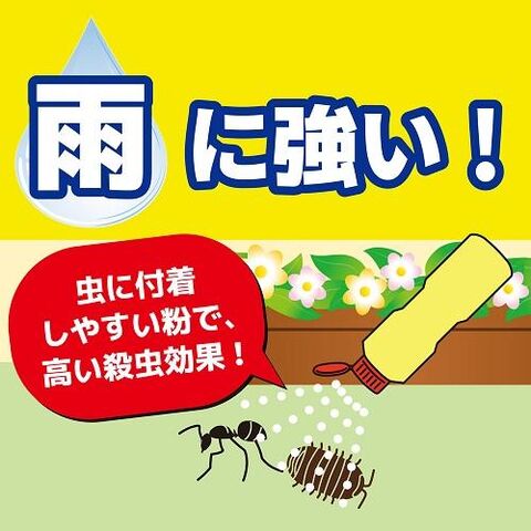 虫にまとわりつきやすい粉で殺虫成分が効率よく虫に付着。優れた効果を発揮します。