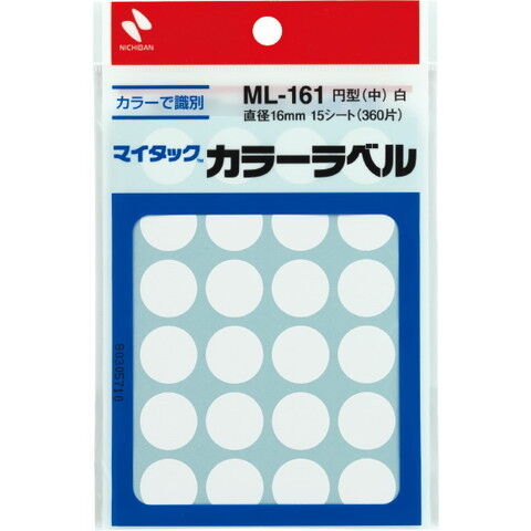 ニチバン マイタック ラベル カラーラベル(φ16) 24片×15シート入(360片入)(白) ML-1615 【返品種別A】