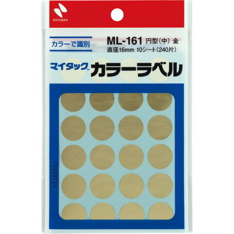 ニチバン マイタック ラベル カラーラベル(φ16) 24片×10シート入(240片入)(金) ML-1619 【返品種別A】