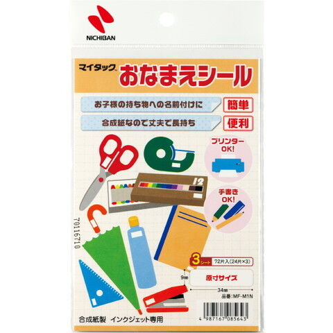ニチバン おなまえシール 9×34mm 24片入×3シート入(72片入)(白) MF-M1N 【返品種別A】