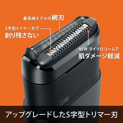 最高峰モデルの網刃を搭載しヒゲをしっかりキャッチ。S字型トリマー刃で剃り残さない。