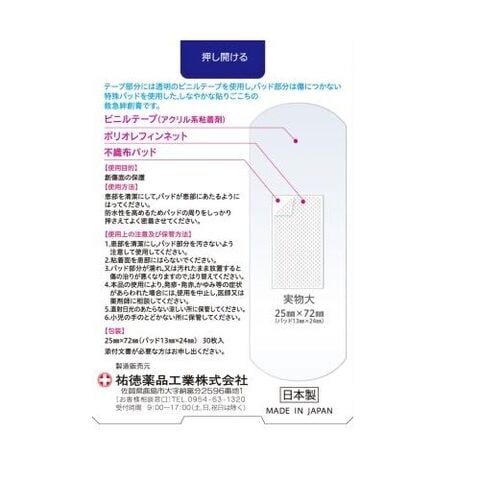 ■使用方法:患部を清潔にして、パッドが患部にあたるようにはってください。