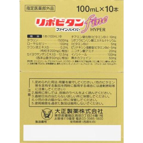 大正製薬 リポビタンファインハイパー 100ml×10本 【指定医薬部外品】 リポビタンフアインハイパ-10P 【返品種別A】