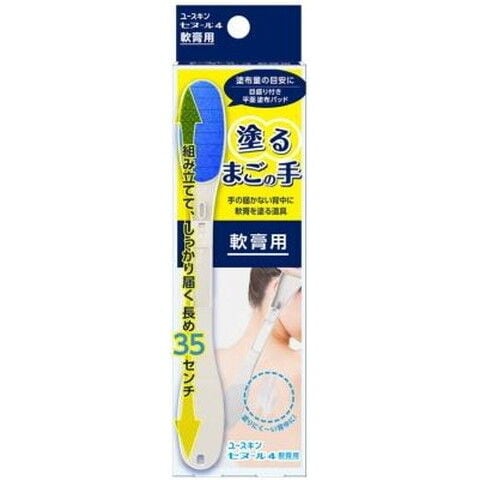 ◆手の届かない背中に軟膏を塗るとき、孫の手のように使う道具です。