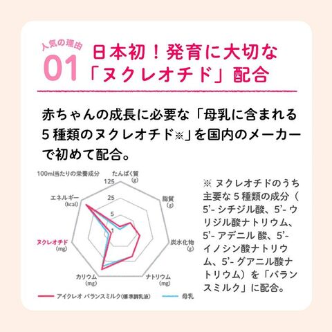 ◆ビフィズス菌を増やす、。ヌクレオチドを母乳に近い量配合