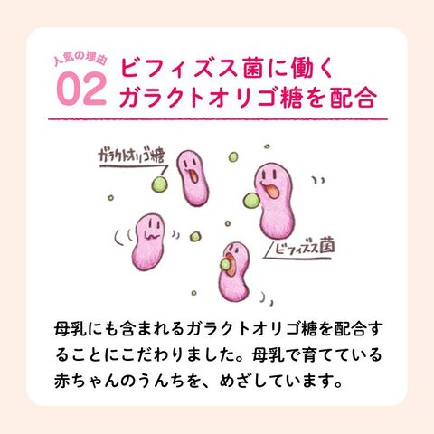 ◆ビフィズス菌に働く。ガラクトオリゴ糖を配合