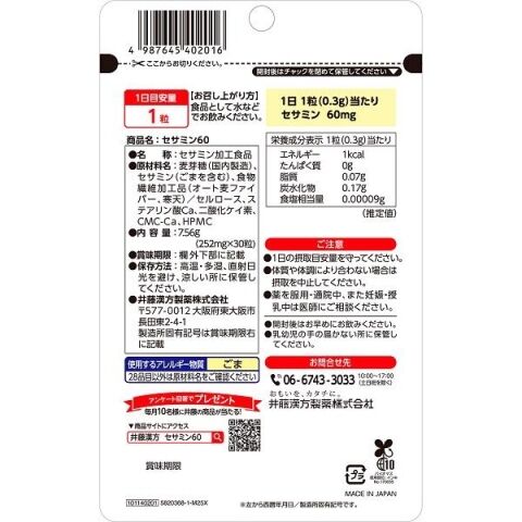井藤漢方製薬 セサミン60 30日分 セサミン60 30ツブ 【返品種別B】