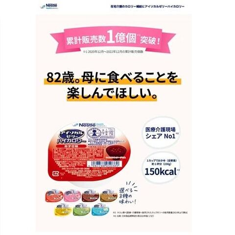 1 飲み込みがきになるときに(えん下困難者用食品 許可基準 表示許可を取得。 本品は誤嚥防止を目的としたえん下困難者に適した食品です)