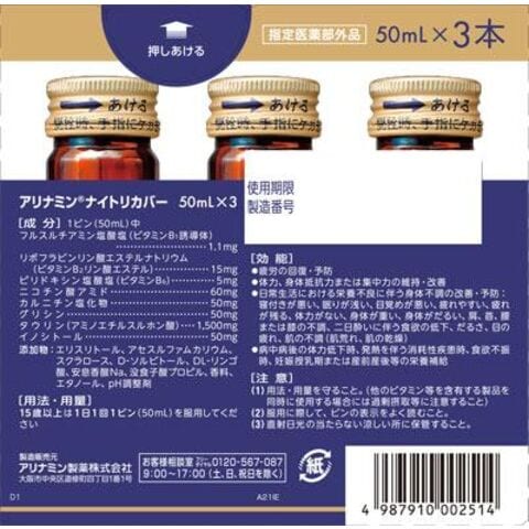 アリナミン製薬 アリナミンナイトリカバー 50ml×3本 アリナミンナイトリカバ-50MLX3 【返品種別A】