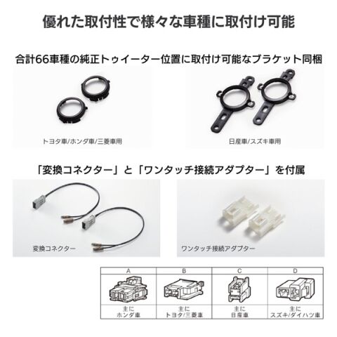 ブラックの本体に大口径のシルバーリングをあしらったトゥイーターは、車室内でも目を引く、ほど良い存在感を醸し出す。