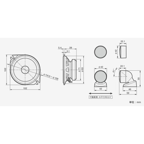 ウーファー:口径φ100mm、耐水スピーカー、特殊耐熱ボイスコイル、ストロンチウムマグネット160g
