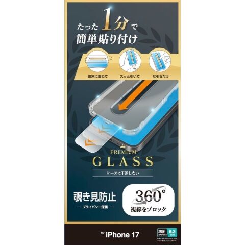 ラスタバナナ iPhone 17用 ガラスフィルム 1分貼付けガラス 上下左右覗き見防止(ブラック)【Joshinオリジナルモデル】 JO-GNIP17-3STEP 【返品種別A】