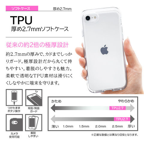 ◆「滑りにくい+衝撃吸収」滑りにくく、しなやかなTPU素材で優しく端末を守ります。