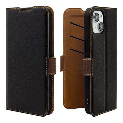 ラスタバナナ iPhone15(6.1inch/2眼)/14/13用 手帳ケース サイドマグネット カード3枚(ブラック×ブラウン) 7574IP361BO 【返品種別A】