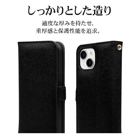 ラスタバナナ iPhone15(6.1inch/2眼)/14/13用 手帳型ケース+ハンドストラップ カード3枚(ブラック) 7582IP361BO 【返品種別A】