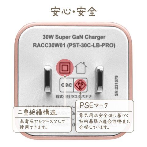 ラスタバナナ PD30W対応 Type-C1ポート AC充電器 CALON(スモーキーピンク) RACC30W01SPK 【返品種別A】のレビュー