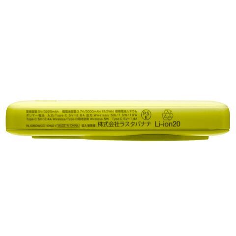 ラスタバナナ Type-C1ポート マグネット付ワイヤレスモバイルバッテリー+Type-Cケーブル 30cm 5000mAh CALON(ライムイエロー) RLI050WCC10W01LY 【返品種別A】