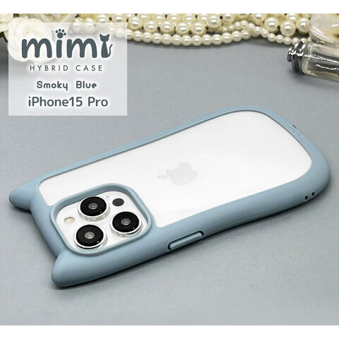 ラスタバナナ iPhone15 Pro(6.1inch/3眼)用 猫耳ケース ハイブリッド MIMI TPU×PC(スモーキーブルー) 7699IP361PHB 【返品種別A】