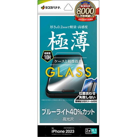 ラスタバナナ iPhone15(6.1inch/2眼)用 液晶保護ガラスフィルム 簡単貼り付けガラス ブルーライトカット 高光沢 0.2mm GST3909IP361 【返品種別A】