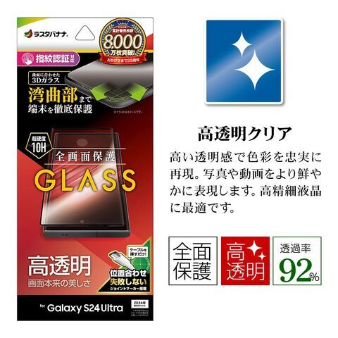ラスタバナナ Galaxy S24 Ultra(SC-52E)用 液晶保護ガラスフィルム 全面保護 3Dガラス 高光沢 指紋認証対応(ブラック) 3S4168GS24U 【返品種別A】