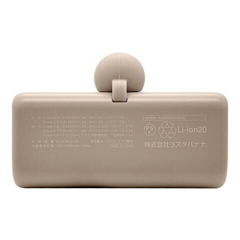 ラスタバナナ PD20W対応Type-C1ポート Type-C直付けモバイルバッテリー 5000mAh USB-A to Type-C充電専用コード付属 calon(トープ) RLI050C20W02TA 【返品種別A】