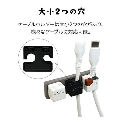 ◆ケーブルホルダーは大小の2つの穴があり、様々なケーブルに対応可能です。