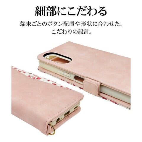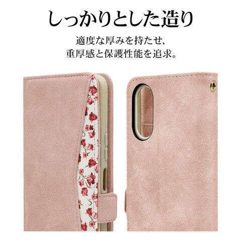 ◆本製品は液晶画面側と背面側の両面を保護できるハンドストラップ付きの花柄手帳ケースです。