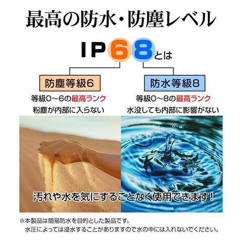◆防水・防塵規格の最高保護等級「IP68」取得済。
