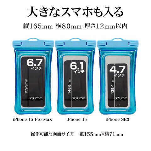 ※ご使用前に防水ケースに傷や破れがないかを必ず確認してください。水圧によって浸水することがありますので水の中には入れないでください。