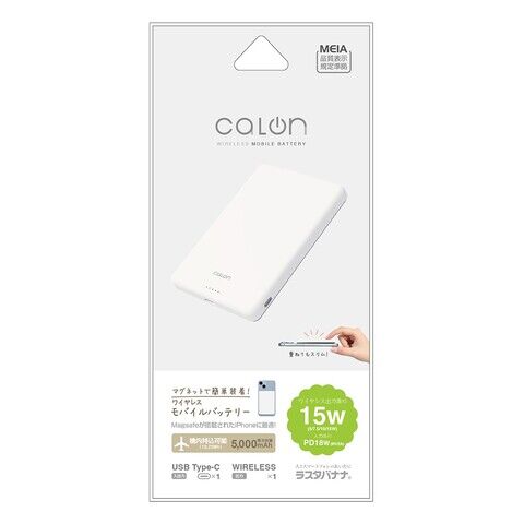 ラスタバナナ Type-C 1ポート 薄型マグネット付 ワイヤレス モバイルバッテリー 5000mAh CALON(ホワイト) RLI050WCC15W01WH 【返品種別A】