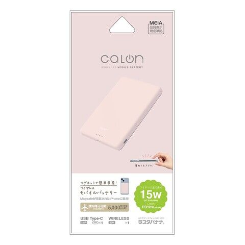 ラスタバナナ Type-C 1ポート 薄型マグネット付 ワイヤレス モバイルバッテリー 5000mAh CALON(スモーキーピンク) RLI050WCC15W01SPK 【返品種別A】