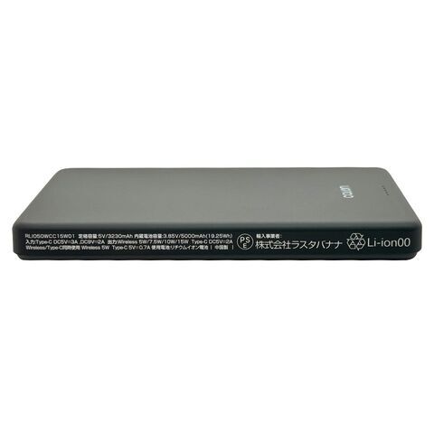 ラスタバナナ Type-C 1ポート 薄型マグネット付 ワイヤレス モバイルバッテリー 5000mAh CALON(チャコールグレー) RLI050WCC15W01CGRY 【返品種別A】