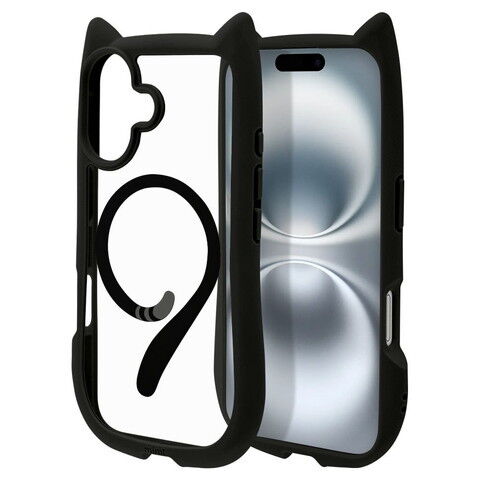 ラスタバナナ iPhone16用 MIMI 猫耳ハイブリッドケース TPU×PC MagSafe対応(ブラック) 8147IP461HPMBK 【返品種別A】