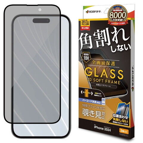 ラスタバナナ iPhone 16 Pro用 液晶保護ガラスフィルム 全画面保護 角割れしない3Dソフトフレーム 左右覗き見防止 治具付き(ブラック) SK4378IP461P 【返品種別A】のレビュー