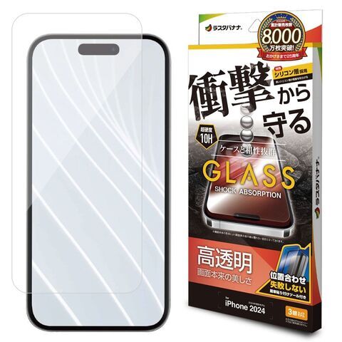 ラスタバナナ iPhone 16 Pro用 液晶保護ガラスフィルム 衝撃吸収 高光沢 治具付き GSA4386IP461P 【返品種別A】