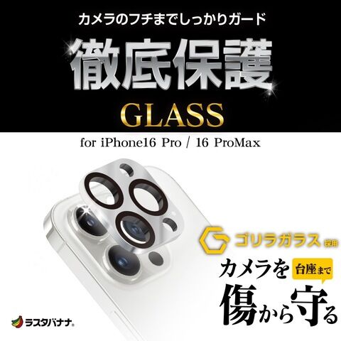 ラスタバナナ iPhone 16 Pro / 16 Pro Max / 15 Pro / 15 Pro Max用 カメラレンズ保護ゴリラガラスフィルム アルミフレーム(シルバー) CR4430IP4617P 【返品種別A】