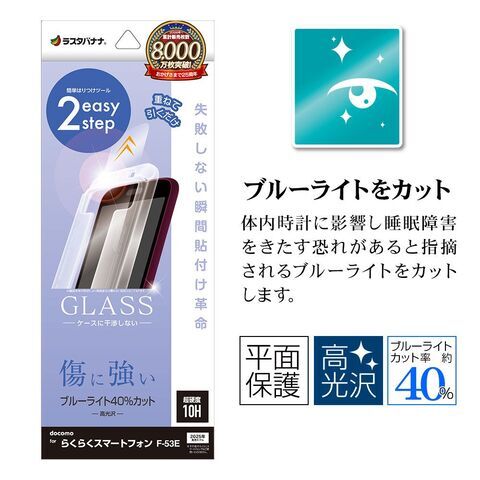 ラスタバナナ らくらくスマートフォン(F-53E)用 ガラスフィルム 瞬間貼り付け革命 ブルーライトカット 高光沢(クリア) MTK4662F53E 【返品種別A】
